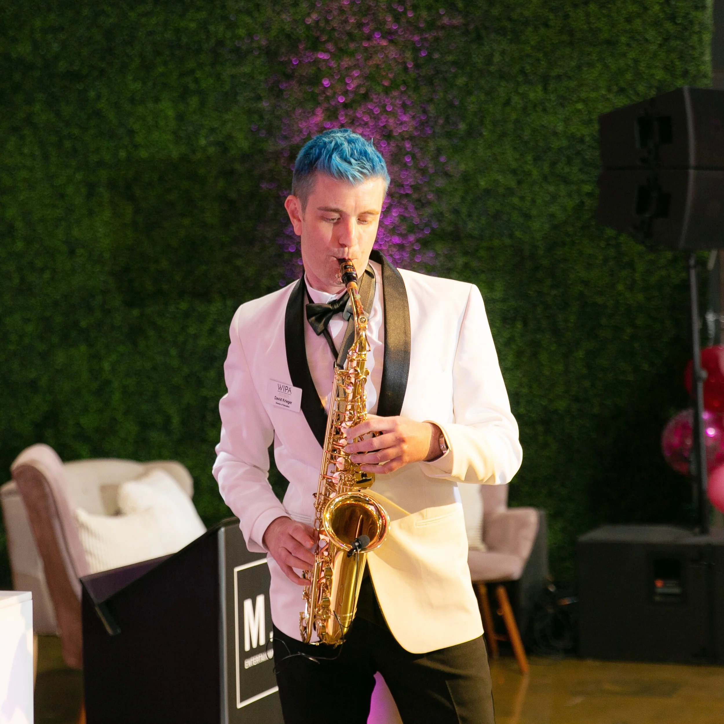 I have offered hybrid entertainment in the past partnering with other pros, but I haven’t played both the DJ and saxophone parts in awhile. The last time I played both for an event, I had blue hair! Not only is it a creative challenge to play an instrument, but also a unique opportunity because I know exactly what songs will be played and how they will be mixed. The resulting sounds are unreal!